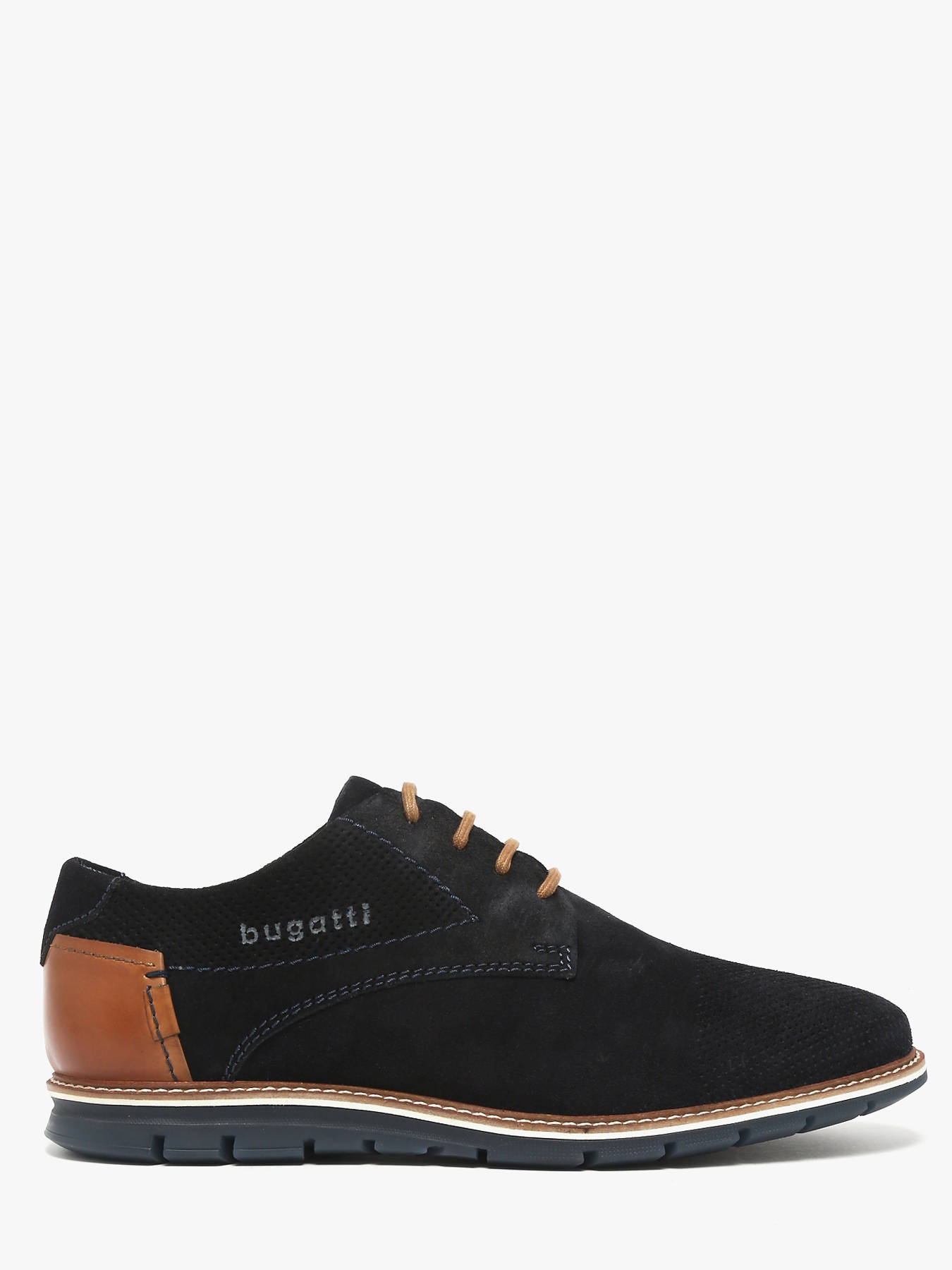 Les chaussures de ville à lacets BUGATTI en cuir bleu foncé de la gamme Simone Comfort allient élégance et confort. Leur design raffiné se distingue par des perforations respirantes, un détail arrière marron cognac et des coutures ornementales, apportant style et sophistication. Intemporelles, ces chaussures en daim pour homme présentent un aspect légèrement vieilli qui renforce leur charme et leur caractère. Les semelles intérieures amovibles permettent d’ajuster le confort selon vos besoins, tandis que leur silhouette élégante s’accorde parfaitement avec un costume ou un ensemble plus décontracté. Ce modèle combine modernité, tradition et praticité, offrant aux hommes une chaussure chic, confortable et durable pour toutes les occasions, du travail aux sorties habillées.